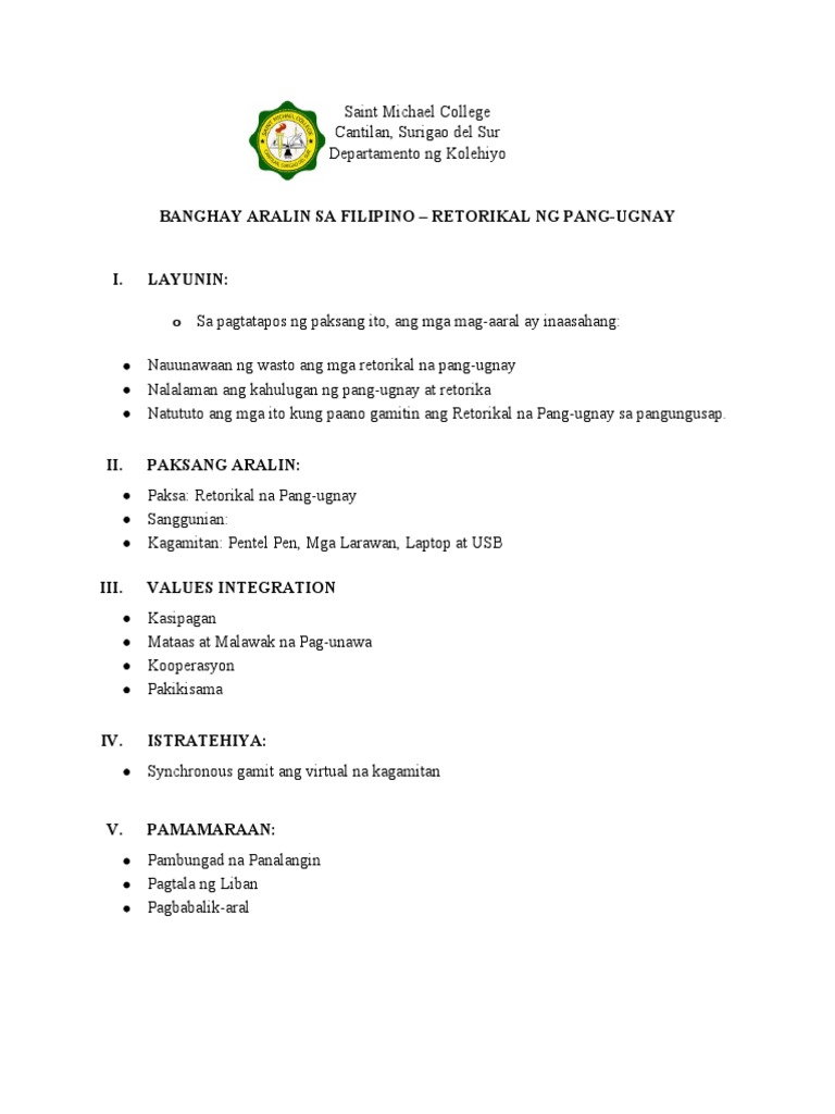 Kahulugan ng retorikal. Ito ay tinatawag ding idyomatikong pahayag o sawikain sa ating wika. Mahusay rin si apostol Pablo sa paggamit ng retorikal na mga tanongRo 831-34. ONOMATOPIYA Sa pamamagitan ng tunog o himig ng salita ay nagagawang maihatid ang kahulugan Halimbawa.