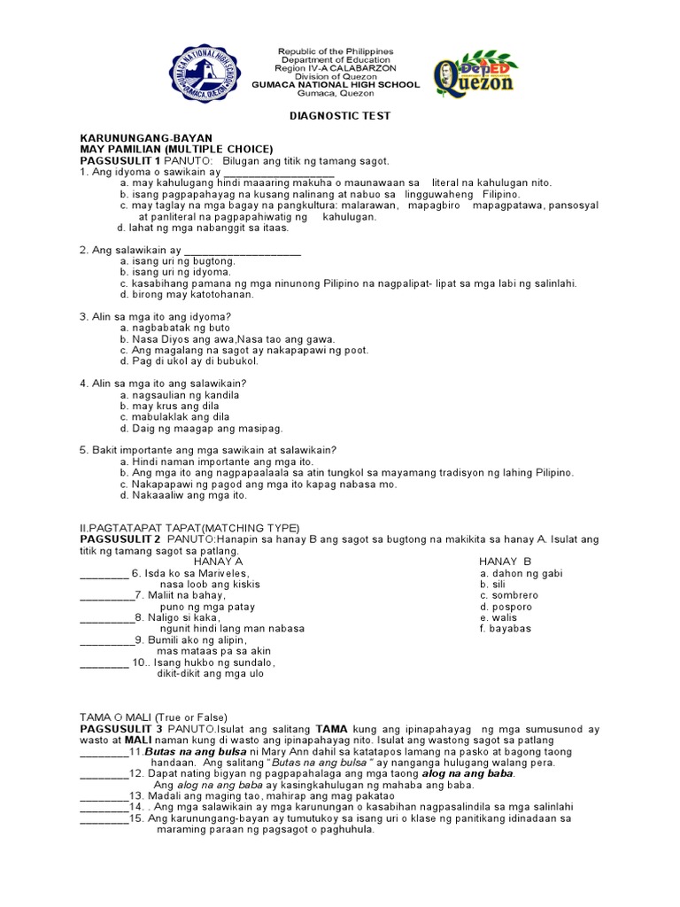 Sa ibang wika Huling binago ang pahinang ito noong 1253 8 Enero 2018. Maikling Pagsusulit sa Filipino 8 1-2 Aralin DRAFT. Ang mga negatibong sitwasyon na nagdudulot ng kawalan ng katiyakan hindi.