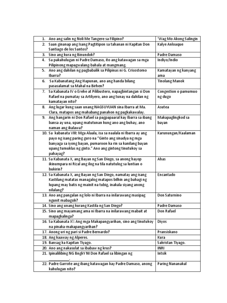 Sa isang dulo ng sala ang _____ ay nakaupo sa harap ng mesa. Start studying Bokabularyo ng Noli Me Tangere. Ang sugat niyay buhat daw sa kawalang-ingat ayon sa mag-aalahas.